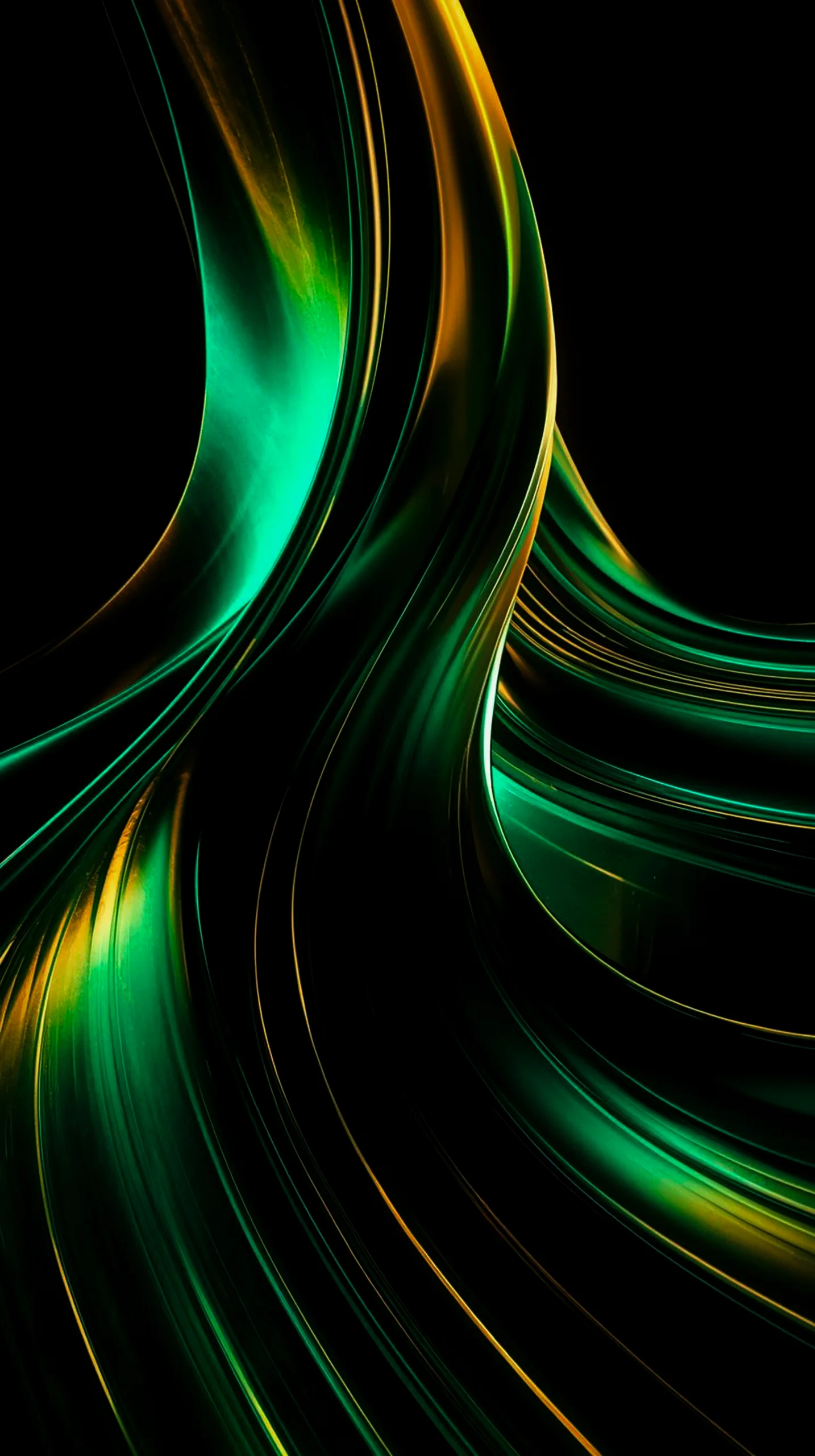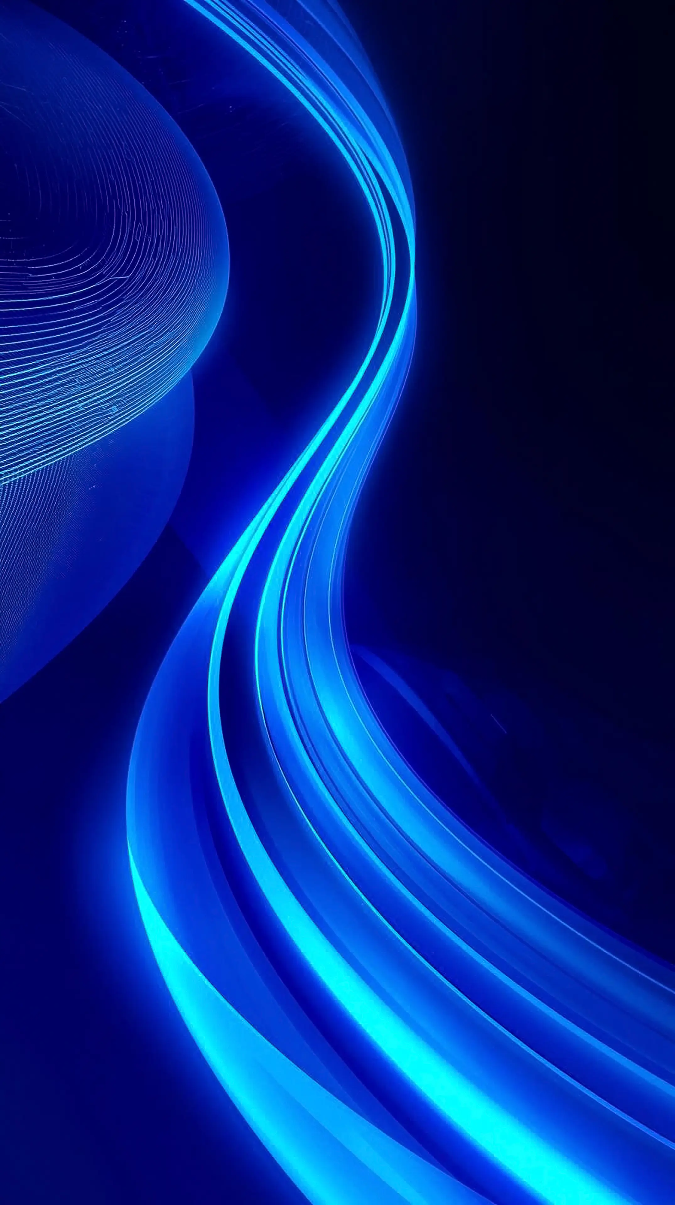 4k wallpaper for mobile Neon Blue Glossy Wave Flow, Futuristic Smooth Electric Ribbon Curves with Luminous Glow on Deep Black Background