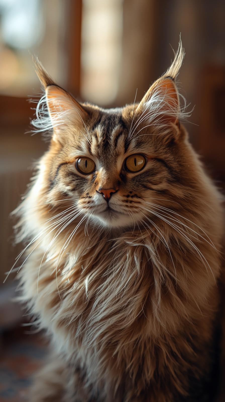 phone wallpaper 4k Cute Steampunk Ginger Cat Wearing Monocle Goggles Brown Leather Coat Red Scarf Feathers Cozy Vintage Room Aesthetic)