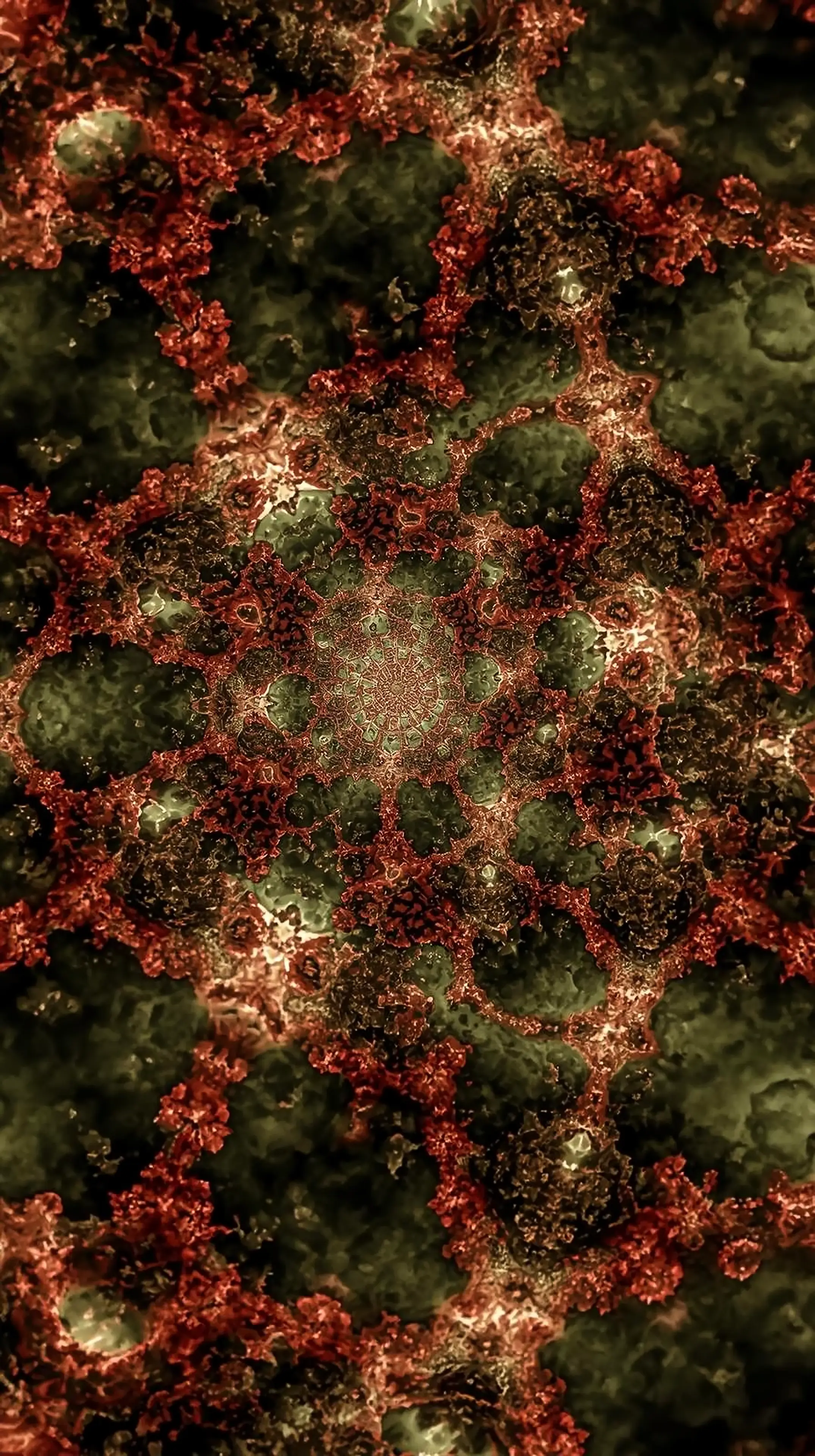 4k wallpaper for mobile Alien Red-Green Fractal Mandala, Psychedelic Organic Coral Reef Pattern with Emerald & Crimson Organic Growth