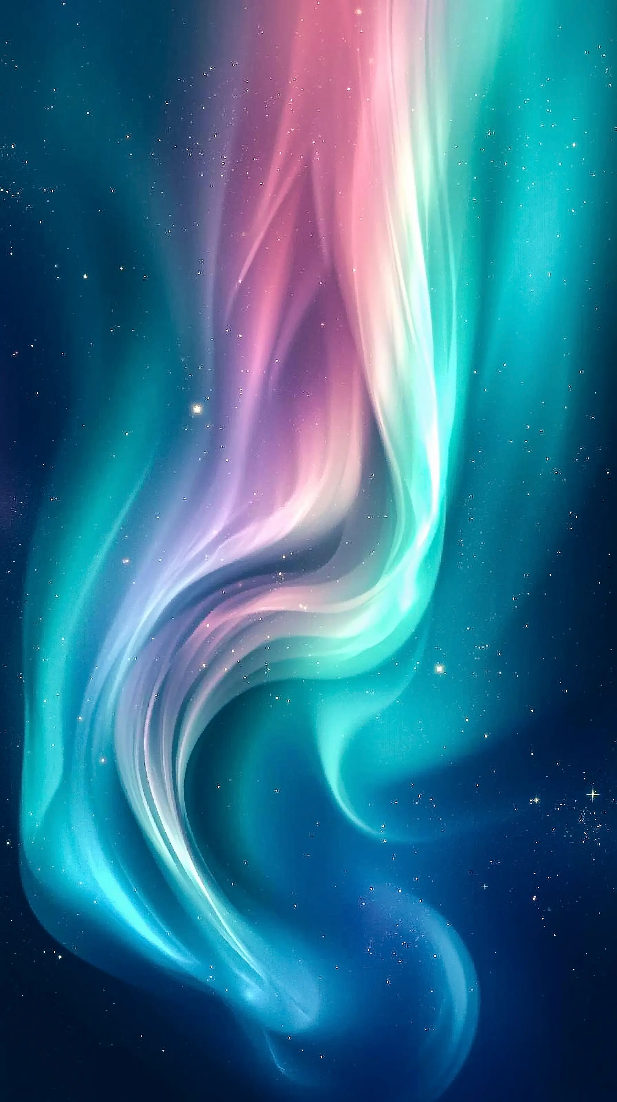 4k wallpaper for mobile Ethereal Aurora Borealis Swirl, Pastel Pink Teal Blue Northern Lights Flow with Starry Sky & Cosmic Glow