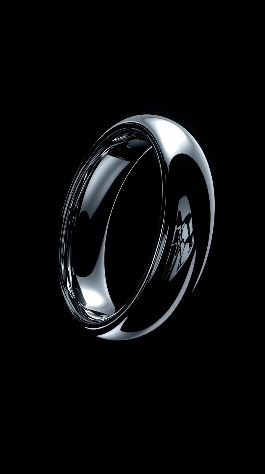 iphone wallpaper 4k Polished Chrome Torus Ring Floating in Dark Void Glossy Metallic Reflections Glowing White Halo Ring Futuristic Minimalist 3D Aesthetic
