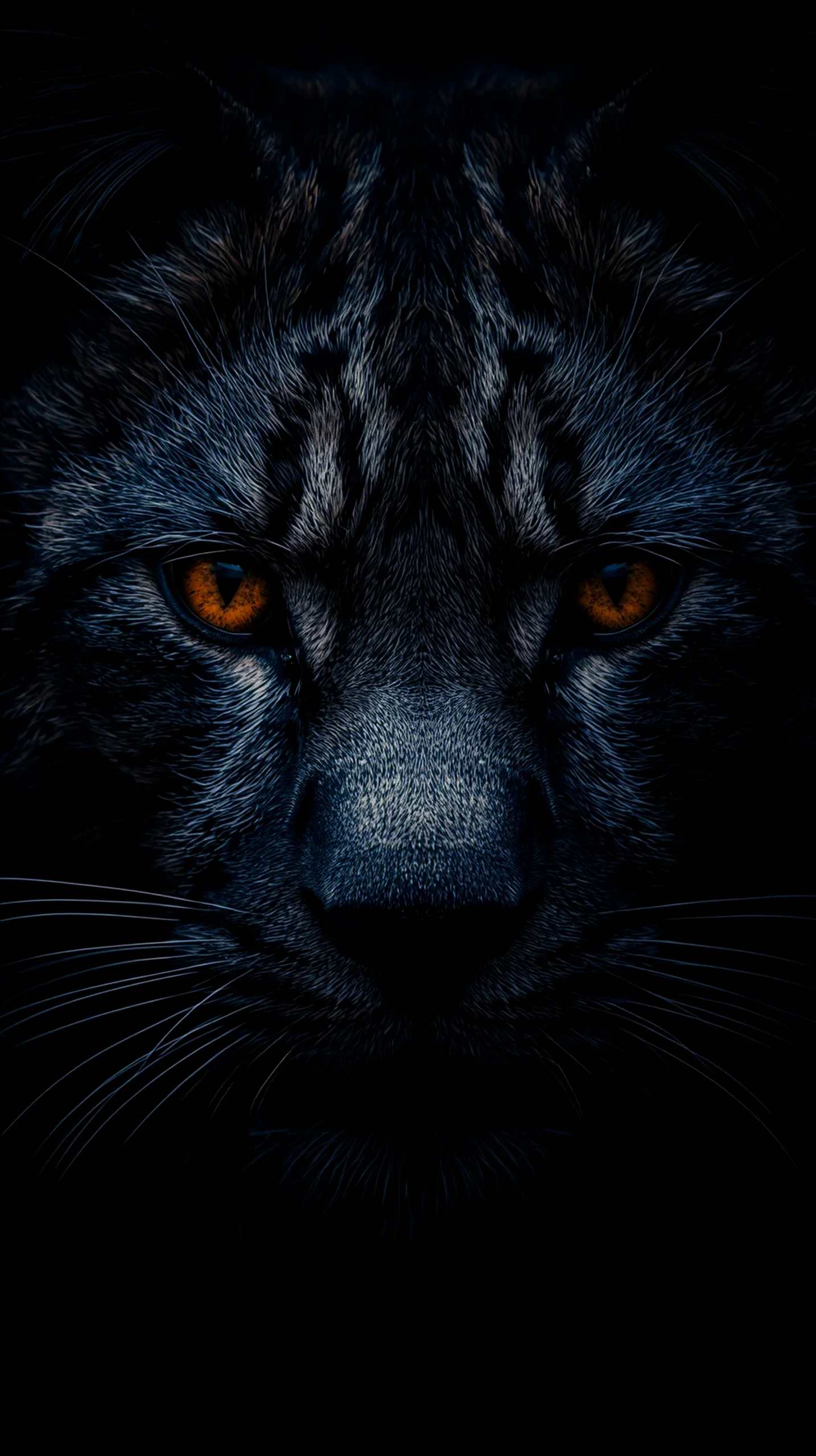 Dark AMOLED Cat Eyes 4K Mobile Wallpaper: Intense Gaze